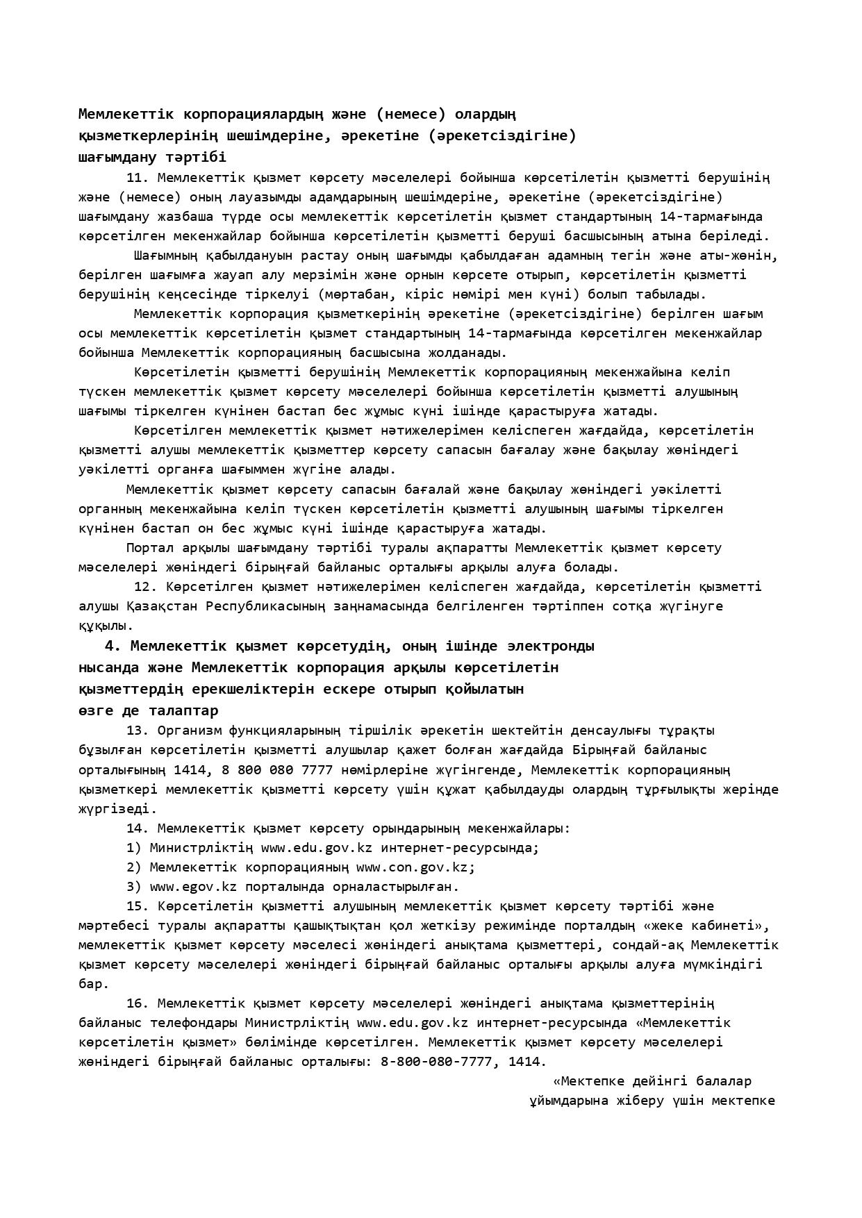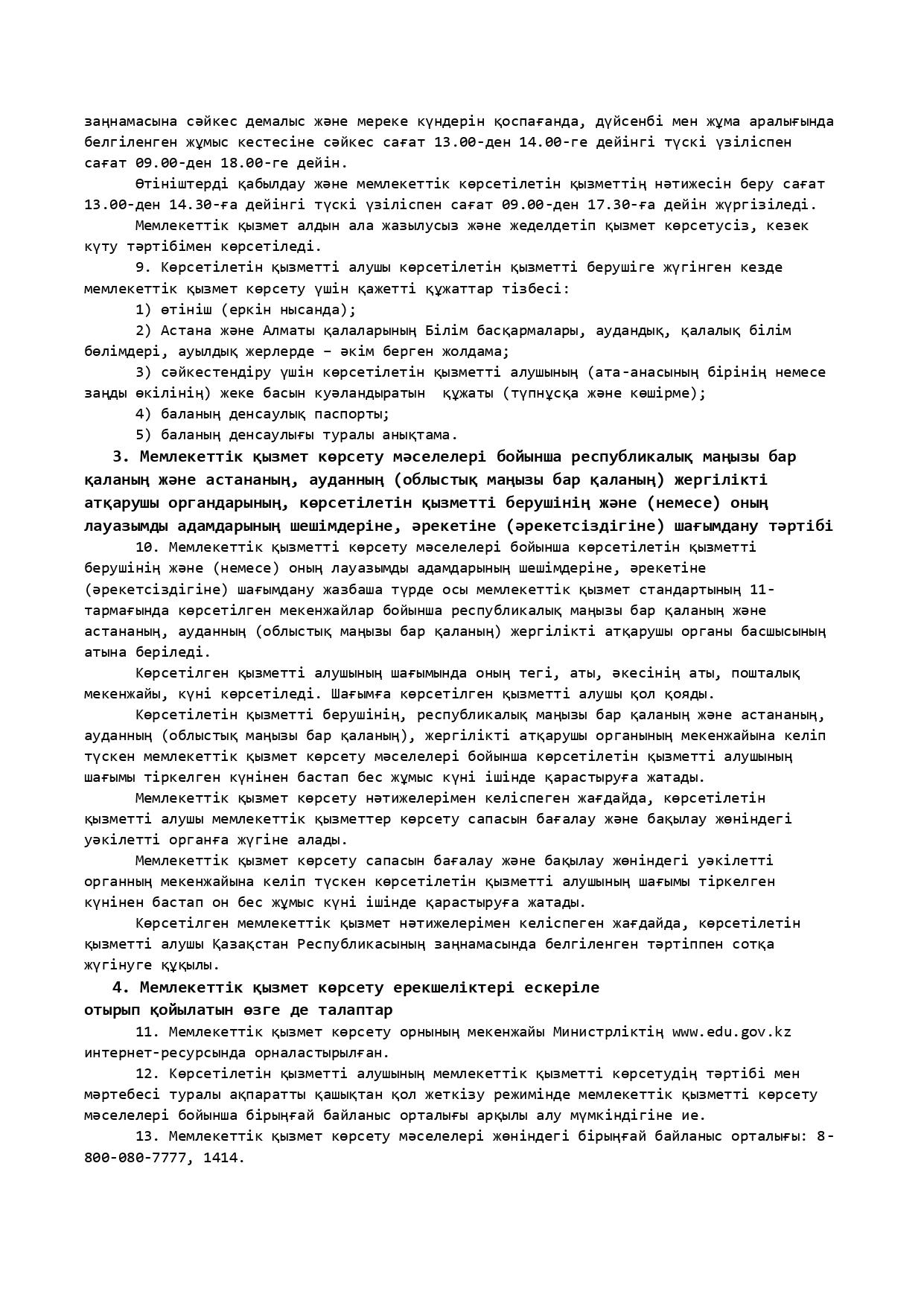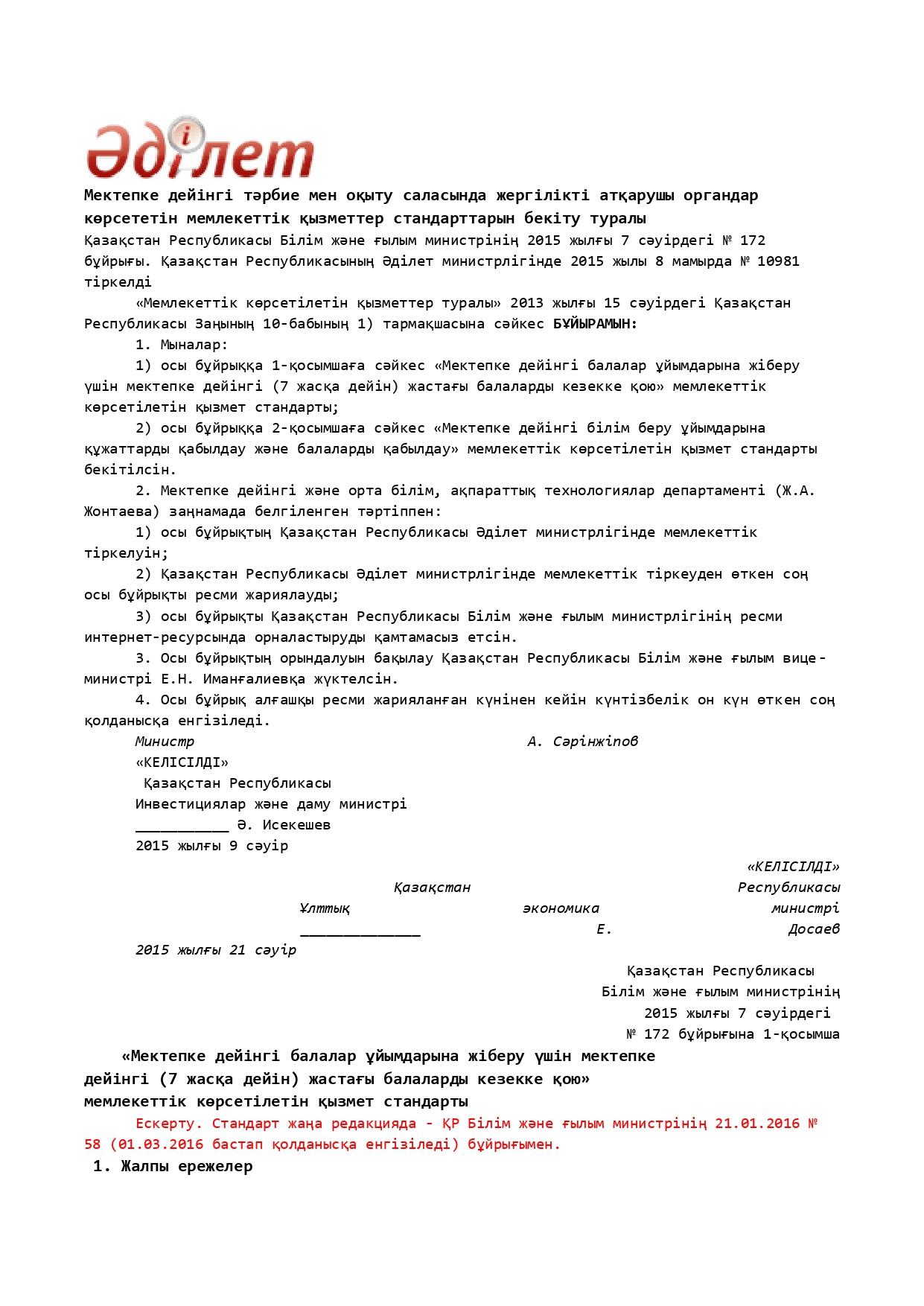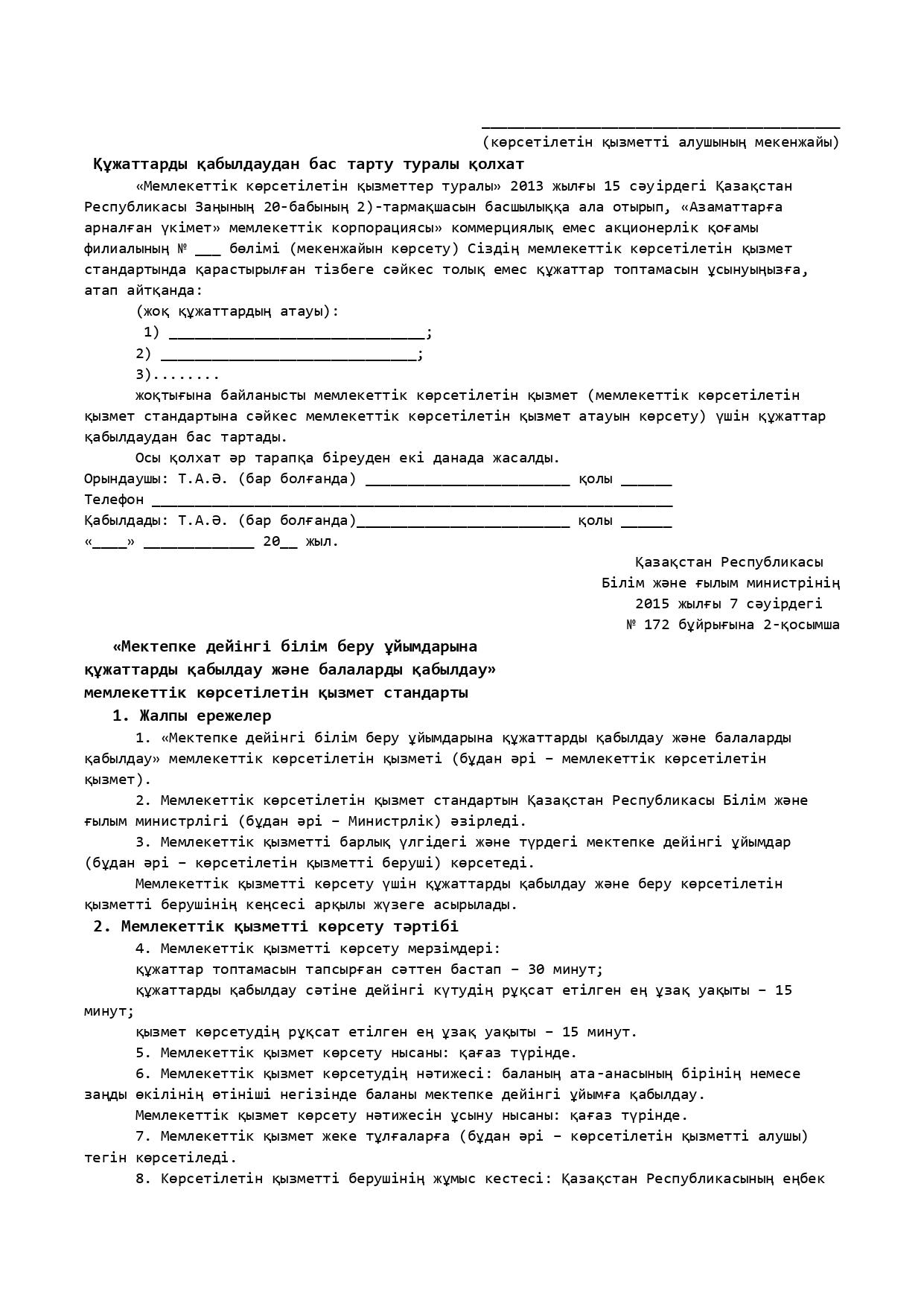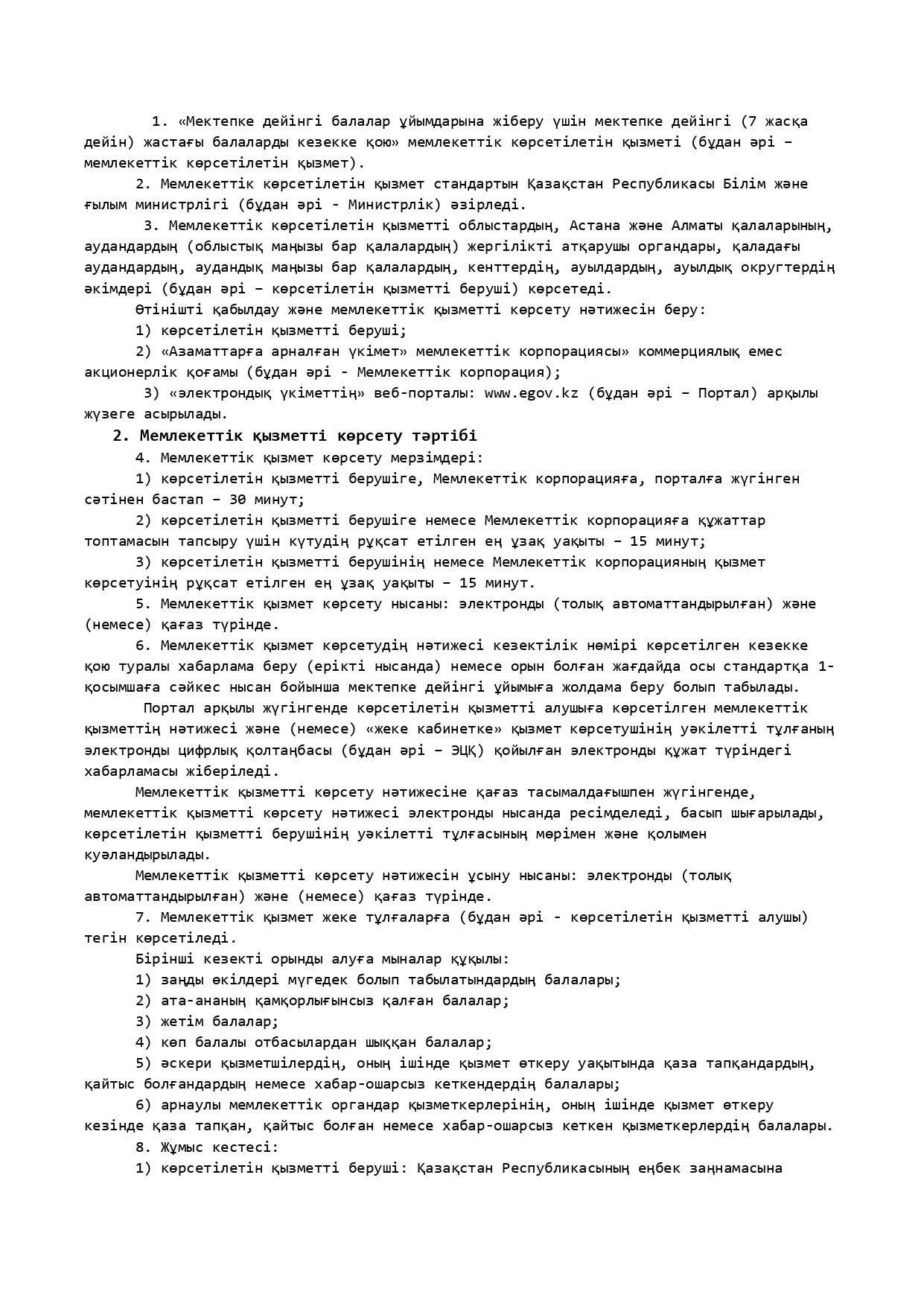 01 қыркүйек 2020 0 1 2 3 4 5 Мектепке дейінгі тәрбие мен оқыту саласында жергілікті атқарушы органдар көрсететін мемлекеттік қызметтер стандарты
